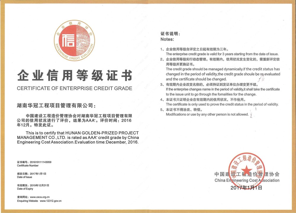 全國(guó)誠(chéng)信等級(jí)AAA-級(jí)工程造...
